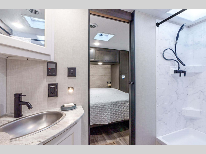 With a variety of floorplan designs and weights, these units are super light weight with exclusive technology to make setting up your RV easier so you can spend more time enjoying your outdoor activities. Their modern farmhouse design with heirloom maple, antique white glazed cabinets, and double door 10 cu. ft. refrigerator will have you feeling right at home. Each one of the four exterior colors to choose from will turn heads at the campground!